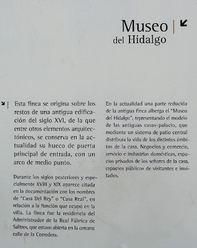 Read moreEl Museo del Hidalgo está ubicado en una antigua casa solariega del siglo XVI, más conocida por el nombre de Casa del Rey. En este museo podemos descubrir cómo era la vida de los hidalgos, que inspiraron a Miguel de Cervantes cuando creó el personaje de Don Quijote de La Mancha. El museo o "Casa del Hidalgo" es, además de museo, un centro de interpretación dedicado a la forma de vida de los hidalgos manchegos. Cómo ya he dicho, es conocido por su antiguo nombre de Casa del Rey, ya que fue la residencia del Gobernador de la Real Fábrica de Pólvora que existía en Alcázar de San Juan desde el siglo XVI.