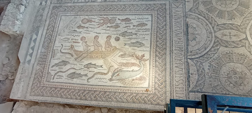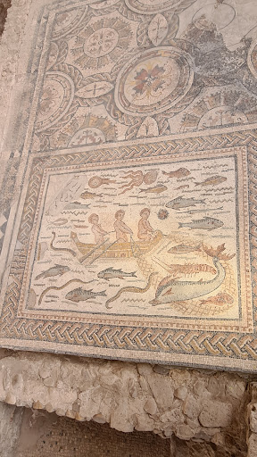 En la sala de mayor tamaño, que hacía las veces de distribuidor, aparece un mosaico de gran tamaño que presenta una escena de pesca. La obra está firmada por Hippolytus, un maestro musivario de origen posiblemente norteafricano -se señala el actual Túnez como lugar más factible-, y fue realizada para una de las familias más importantes de la ciudad.