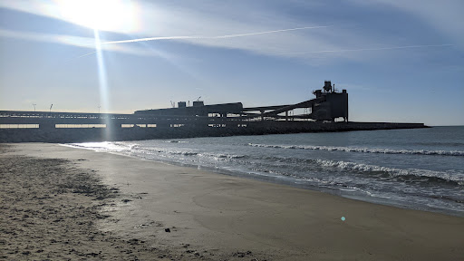 Nice little beach for families, and surprisingly somehow enhanced by the bizarre proximity of the ciment factory which has a kind of sci-fi/steampunk film-set quality to it. The water was good for kids paddling as not too deep, and quite clean (despite reports of algae we did not notice anything nasty in the water — perhaps more obvious to regular visitors?). Lifeguard on duty and showers next to...