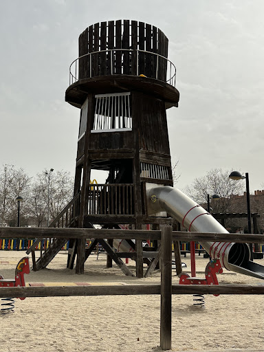 Read moreEs un parque especial. Simula un pequeño poblado del Far West. Tiene varios "Stan" que representan los distintos edificios del poblado, incluyendo uno de "tickets", como si fuera la entrada al parque. Hay un Saloon, una cárcel, una herrería... Además hay un sistema de poleas con arena como si fuera una mina o algo así, un tren y una torre muy alta de madera con dos toboganes a distinta altura. También hay cosas tradicionales como columpios, bancos y esas cosas. El parque está vallado, esta al lado del Cercanías y de una parada de autobús. Se puede aparcar facil, por lo que es...