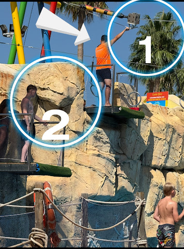 Read moreThe park is nice and clean, well kept. Yet, a bad accident was going to happen today where there are two attractions where people fall into the water. One of the attractions (number 1 in photo) has people silding while hanging from a metal rope and it is safe. This attraction requires the attention of the ONLY employee watching over the two attractions as he must help people to start hanging. The other close attraction (number 2) have people hanging from rings while they try to move at the most of their skills untill they fall into the water, unpredictably. This attraction is not well watched and it does not require to assist the customer to let them start. It should follow the MANDATORY rule that no customer should start their exercise untill the previous player is out of the water. Instead, today a 9 year old kid was still in the water while a big teenager (50-60 kg) fell into the water missing the younger kid’s back for few centimeters. This lack of safety may transform a happy kid in a kid trapped in a wheel chair. It is not admissibile. We made a complaint with a security guy who apparently listened to us. Yet, it is necessary that the Park employs 2(two) guys if the Park wants to run 2(two) attractions. If you have any doubts about the unwatched game , two photos can make it clear. You can see that the only employee cannot supervise both the attractions. This complaints has to stay online, because arrangments must be made to avoid trasforming happy playing into surgeries ! Even if it is a good park,...