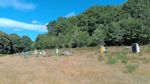 Artistic expression with placed, painted large stones megolithic style in a sheep field, the work of a local artist in 1999. It's next to the banks of the River Arnoia and some beautiful riverside woodland in between there are more stones and painted trees. The installations nearby include an educational centre and factory who make cheese using crude sheep's milk. Unfortunately the artists sight has not been well maintained and is gradually falling into decline,although still on the tourist...
