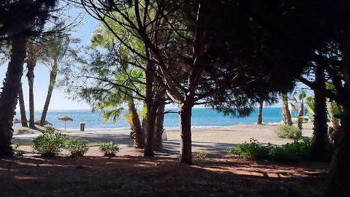 Personally, I consider this beach to be a mini piece of a tropical island paradise in this part of Andalusia, mainly because of the completely empty beach in winter, the rustling of palm trees around the rocky coast nearby, a lush wall of trees behind and temperatures reaching 25 degrees this winter. What more...