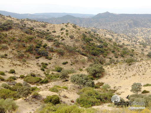 The Sierra de Andújar Natural Park encompasses mountain views, pinewoods and scrub with rough pastures. It is currently the go-to place to look for the rare but increasing Iberian Lynx, Lynx pardinus. The main area where people look is along the road JF-5004, stopping at the series of Miradores which lead from the start of the road down to the Salto del Jándula dam. Other people also see the Iberian Lynx around the Encinarejo dam, which is reached by travelling north of Andújar along the A-6177 and turning off right at the recreational area before reaching the Virgen de la Cabeza (this in itself is a nice area for viewing the surrounding countryside and seeing some birds such as Alpine Swift, Red-billed Chough, Blue Rock Thrush and raptors).