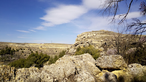Se llega por una senda circular desde el pueblo, con arboles y huertos. Se llega primero al Aguallueve (espectacular), y enseguida se sube hasta la cima donde está el torreón. Quedan sólo unos sillares muy grandes de la base del torreón, pero las vistas de Anento y del barranco son muy bonitas. Se puede volver por donde hemos venido o seguir la senda circular para...