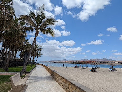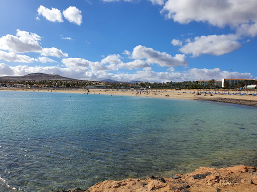 the car parks seem to be at the right end of the beach too or you can park anywhere on any road in the sprawling complex all around this end of Caleta de Fuste