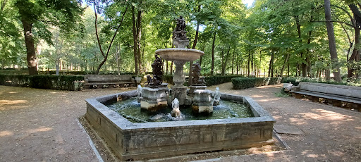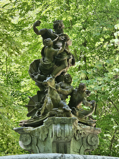 The Fountain of Neptune is one of a series of fountains that act like crossroad markers inside the extensive gardens of the Royal Palace of Aranjuez. Long shaded alleyways that are lined with tall trees end up at one of several fountains, including this one. Several are called after Roman deities, including Neptune, Diana or Bacchus. There's usually a couple of stone benches around the fountain if you're looking for a place to sit down and relax...