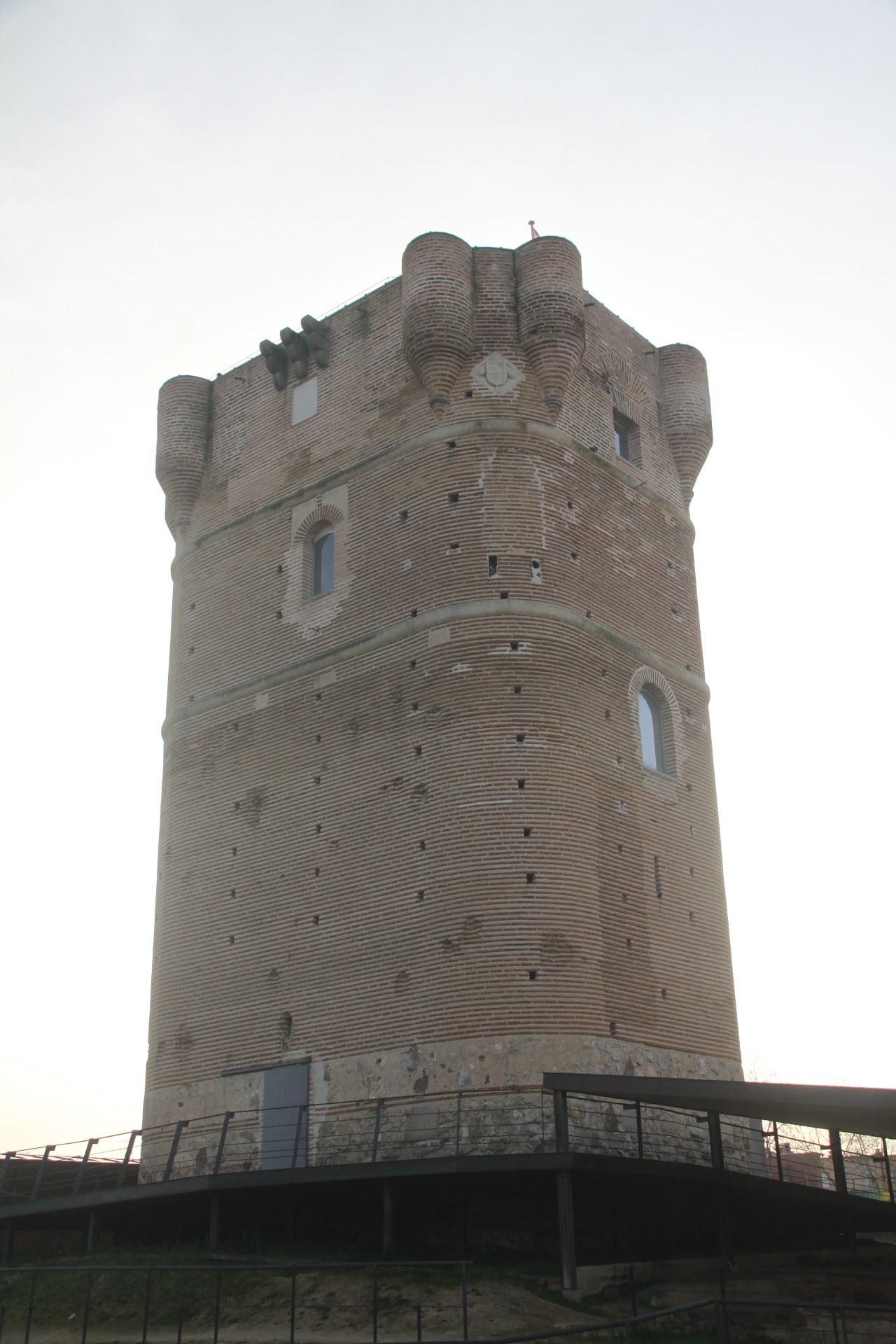 Fortaleza de estilo gótico construida en el siglo XV dutante la Guerra de Sucesión Castellana y conocida bajo el nombre de Castillo de Gonzalo Chacón o Castillo del Pan. Actualmente el resto mejor conservado es su torreón o torre del homenaje, construida en ladrillo y apoyada en cimientos de piedra, con cinco pisos de altura y planta cuadrada con esquinas redondeadas, rematado en su parte superior por ocho garitones. El castillo estaba rodeado de un gran foso y defendido por una barrera de artillería, con torreones en cada una de sus esquinas. También contaba a sus lados con edificios auxiliares usados como caballerizas y cocinas. El acceso al recinto amurallado se encuentra en el lado sureste. Durante el siglo XIX y XX la torre fue usada como granero y palomar, hasta que se restauró y excavó a comienzos...