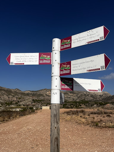Read moreRuta sencilla y camino en buenas condiciones, aparcamos donde empieza el camino de tierra donde la carretera, se puede entrar con cuidado con coche hasta la zona del mirador. Buena ruta para hacer en familia, hay zonas con sombra pero no muchas, esta muy bien señalizado, cuando llegas a la bifurcación del camino donde te encuentras una subida en cuesta en la derecha y un camino llano a la izquierda hay que coger el camino de la izquierda para llegar a los puentes y al mirador, más adelante hay un trozo a la izquierda donde se puede ver el río pero está un poco peligroso para bajar al agua. El camino de la derecha sigue 20 minutos aproximadamente hasta que puedes elegir otra vez entre izquierda y derecha, el camino de la izquierda se acaba y llega a las vías del tren, el de la derecha te lleva...