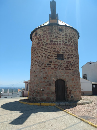 El molino de viento del Santo Cristo está situado en la parte alta del pueblo. Construido en sillares de arenisca de la zona, tiene 12 m. de altura en tres niveles y 4’5 m. de diámetro. En su interior contiene una exposición permanente diseñada por José María Cantarero, denominada «Historias al viento», en la que se narran, estructurados por niveles de ocupación, las tipologías de molinos de viento, la historia y evolución de los molinos hasta la aparición de los de viento en el S. XII, y la vinculación de la localidad de Baños de la Encina con los molinos y los trabajos vinculados en general al cereal, mostrando rutas por el entorno más cercano de la localidad donde se localizan eras, chozos de colonos vinculados a la agricultura de rozas, molinos hidráulicos, bancales del cultivo de cereal, poblados de la edad del Bronce donde aún aparecen multitud de molinos de mano, etc. Tan sólo se sabe que es anterior al S. XVIII, ya que en el catastro del Marqués de Ensenada ya aparece sin uso (1752). Su nombre deriva del paraje en el que se encuentra (llano del...