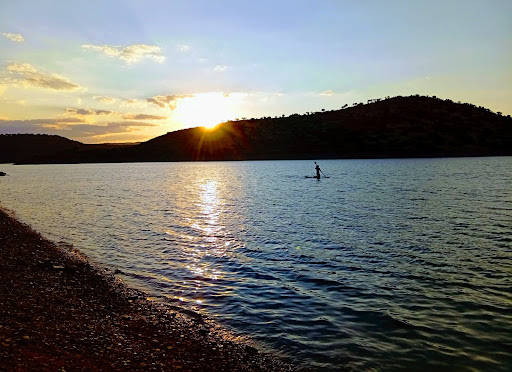 Si piensas en ir, no sigas la dirección de Google Maps y hazle caso a las señales en carretera "Playa del Tamujoso" cuando haya un cruce y te acerques a Baños de la Encina, ya que te hace subir por el camino en dirección "Embalse del Rumblar" para luego deshacer el mismo camino. Si has seguido bien las señales, luego hay que bajar por un camino de tierra situado al lado de una especie de explanada con carteles (a la derecha habrá árboles plantados a 2m cada uno). Si vas bien, en pocos minutos verás una puerta a la derecha que no impide el paso.