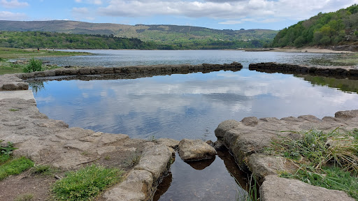 Read moreSteep and narrow access track before you get to a shaded parking area full of campers. Pretty bohemian atmosphere, campfire, outdoor cooking, craft stand selling jewelry, jugglers, yoga and other martial arts were on offer that day (2nd May 2022) in the afternoon. There were several people of various nationalities taking the waters and I had to try it for myself. It was warm and pleasant, shallow stone pools with many uneven slabs, a lot of them slippery. Caution is required and advertised. The place is totally free access so you are under your own responsibility when stepping in any of the pools available. It is possible to lay on the nearby grass verge of the lake and you can also follow the trail to the well preserved ruins of the Roman military camp of Aquis Querquennis, well worth the short walk away. Sadly it was rather windy and cold that afternoon but the space is pretty clean and all seemed respectful of this...