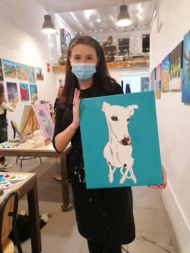 I joined the "Paint your pet" workshop because I couldn't resist. Now I want to paint my dog at Artebar every week!