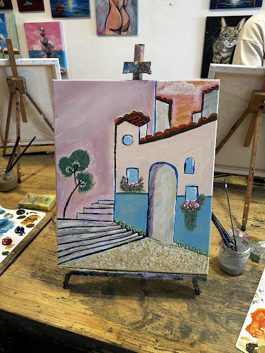 As a pioneer in this unique activity, Arte Bar's experience truly shines through. The attention to detail and genuine care they put into every aspect of the class is evident. The selection of wine was good, and it added an extra touch of relaxation and enjoyment to the painting experience. The music playing in the background created an uplifting vibe and further enhanced the overall atmosphere.