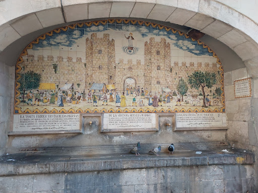 Read moreLa Fuente de Portaferrisa, datada en el lejano inicios de siglo XVII. En 1861, se abrió la fuente en la actual ubicación. Su decoración con 373 bellos y descriptivos azulejos es de 1959, en la que se describen escenas cotidianas de la vida de la Barcelona del siglo XVIII, es obra del conocido ceramista Joan Baptista Guivernau i Sans (1908 - 2001). El santo catalán por antonomasia Sant Josep Oriol (1650 - 1702), de la Congregación del Oratorio de San Felipe Neri, canonizado en 1909, y enterrado en la Basílica de Santa Maria del Pi, preside la escena. La llamada Portaferrisa, construida en el siglo XIII, era una de las puertas de la segunda muralla de Barcelona. Un lugar que merece una visita para retroceder en el tiempo y alejarse del ajetreo y...