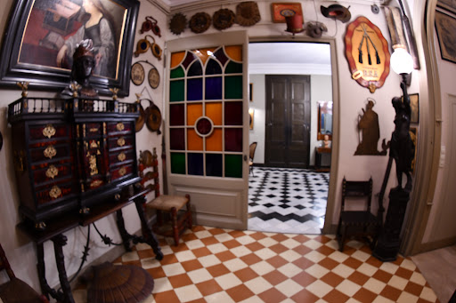 Visite culturelle facile à faire en famille à Barcelone, en Espagne. La bâtisse que vous visiterez est gérée par la fondation culturelle privée Rocamora et vous devez obtenir les billets pour la visite guidée via l'organisation Cases Singulars - visitez leur site internet pour les détails. La visite de cette superbe demeure bourgoise d'un autre siècle permet d'accéder au jardin arrière extérieur et aux nombreuses pièces de la maison, ou sont conservées différentes collections d'oeuvres. Nous avons particulièrement apprécié le bureau de travail avec ses étagères garnies de livres, et les vieilles enseignes servant à désigner le métier des occupants.
