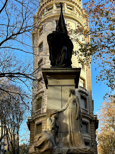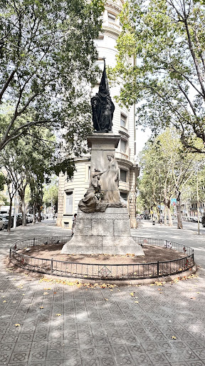 Read moreL'estàtua de Rafael Casanova (1660 - 1743), conseller en cap durant el setge de Barcelona a la Guerra de Successió, va ser realitzada per Rossend Nobas el 1888 i ubicada a l'actual passeig de Lluís Companys. El 1914 va ser traslladada al lloc on és ara (aproximadament el punt on Casanova va caure ferit el 1714) i s'hi va afegir el sòcol, amb relleus de Josep Llimona, i el pedestal, obra d'Alexandre Soler March. Segons Francesc Fontbona, el monument "recull la tradició patètica de l'heroi romàntic amb una expressió facial molt semblant a la del famós Torero ferit que el mateix Nobas havia realitzat disset anys abans". És interessant el contrast entre el romanticisme de l'escultura de Casanova i l'estètica suau, de reminiscències clàssiques, de les figures femenines de Llimona. Cada onze de setembre, el monument rep l'homenatge de les més importants entitats socials i...