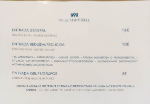 Read moreUnfortunately this is quite an elitist institution. Even if you are unemployed you still have to pay 10 euros (!) to see the current exhibition and there are no days or evenings when admission is free. Due to the high admission price it is impossible for an unemployed or homeless person to visit this important cultural institution. With the impending cost of living and unemployment crisis it is a sad state of affairs that no concessions are made for those who do not have the economic means to experience the cultural events on offer. This is old world elitism where art and culture are only for the wealthy. My personal message to Palau Martorell is, please reform your admissions policy so exhibitions and events are available to everyone, and not just those who can afford...