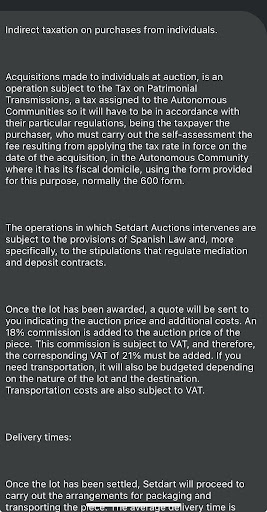 This is likely the best and most professional auction house I ever dealt with (and I do buy at auctions frequently): Communication with representatives was always easy and quick, both pre and post sale. In particular, their representative for international business (Sofia) spoke impeccable English, was very quick in getting back to me and forthcoming and helpful in providing the information I wanted/needed and in organizing the transport after sale After sale process of my item (an antique) was perfect: they gave me a quote for transport and the entire process around it which was low by any auction transport standards - yet the transport part was with a very reputable international transport company. They handled the entire export permit process (as part of above mentioned quote) effectively despite difficulties and rather excessive provenance information requests from the side of the authorities. When the authorities took a while in deciding upon the export permit, the auction house continuously followed up & informed me about the status. When the permit process took longer than expected (due to delays on the side of the authorities, not the auction house), the auction house pro-actively offered full reimbursement of the sale price and all other fees. In the end, the permit request was successful and shipping done quickly.