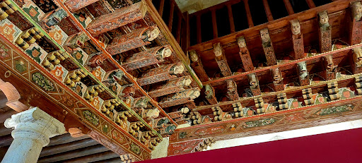 Impresiona su pórtico de dos pisos con columnas de piedra, artesanado mudejar del siglo XVI, y obras de Juan de Juni, Pedro Berruguete y Alejo de Vahía, entre otros.