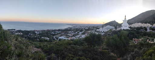 Lindo parque, rústico literalmente. Tiene senderos hechos sobre el pasto y entre las piedras de la montaña (no son caminos) hasta llegar a un lugar con una vista espectacular de Benalmádena y Fuengirola. En frente está la Estupa, por lo que la vista, incluso para la montaña, se hace muy bonita. También hay una especie de terraza ya más armada, con ladrillos y herrería que sirve de lugar de rezo (?) con figuras religiosas católicas. Lindo lugar para pasar un rato o inlcuso llevar al perro a...