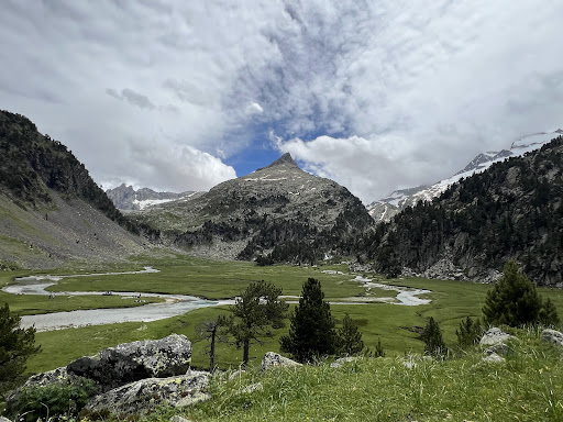 prendre la route qui part de Benasque et arrive au parking de la Besurta, point de départ de la rando. (Attention l'été, la route qui part de l'hospital de Benasque au parking de la Besurta l'été est interdite) (des navettes toutes les 30 minutes vous amène a Besurta. Pour l'aller et retour jusqu'au trou du toro, et au plan de l'Aiguallut a partir du parking il faut compter 2h20mn. Le sentier de rando surplombe le TROU du TORO a 2074m d'altitude, ce GOUFFRE KARSTIQUE de 70m de diamétre sur 40 m de profondeur, dans lequel se jette les eaux du rio Esera, qui lui meme reçoit ses eaux du glacier du pic d'Aneto 3404m. Le TROU DU TORO, un effondrement très impressionnant ou disparaisse les eaux du rio ésera dans son fond tapissé de gravier. (nous y somme descendu lors de notre rando, mais je ne sais pas si cela est encore permis sans danger, se renseigner). Si l'on veut passer un bon après-midi, et déjeuner sur place, on poursuivra jusqu'au plan d'Aiguallut, un vaste plateau en pelouse ensoleillé parcouru d'une multitude de ruisseau dans cette vallée magnifique. En arrivant tot le matin, on apercevra a coup sur, pas mal de marmotte. Sur le chemin de rando du plan d'Aiguallut, si l'on est surpris par le très mauvais temps, on pourra s'abriter dans une cabane en pierre séche ouverte a tous. Pour les amateurs du plus haut sommet des Pyrénées le refuge de la RENCLUSA sera un bon point de départ (réserver a l'avance l'été pour le couchage et la restauration), pour accéder au pic d'Aneto et ses 3404m . Il faut savoir aussi que l'été, l'ensemble de la vallée est très fréquenté, et que certains randonneur cherchant UN PETIT PEU de solitude, ne seront pas comblé. . En définitive un versant Aragonais des Pyrénées Espagnole, dépaysant et vraiment différent et plus sauvage par rapport au versant Français. pour ceux qui veulent encore admirer le plus grand glacier de l'Europe méridionale, il faut avoir comme objectif de gravir le pic d'Aneto ( avec une vue splendide sur le pic voisin de la Maladeta ) a partir du refuge Espagnol de la RENCLUSA, ce qui vous permettra de parcourir sans danger ce glacier (mais au minimum etre encordé + crampons a glace) qui d'après les spécialistes, devrait malheureusement définitivement disparaitre dans les années 2050, suite au...