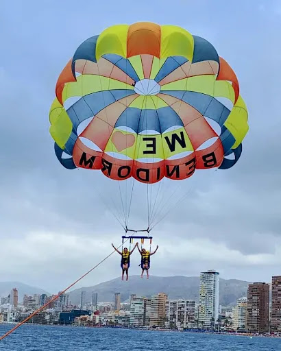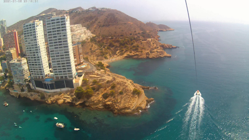 Subí con mis dos hijos adolescentes. Les encantó.Cuando te enganchan al paracaídas, despegas y aterrizas de culo, vuelas sentado y no tocas el agua si no quieres. Es importante tener la sujeción bien puesta en las piernas al despegar, para no acabar colgado de las ingles. Ellos ya te lo indican. Si subís tres, el del medio tiene que ser el que más pesa y también el que menos vistas tiene pero vale la pena. Salimos tarde...pero había hecho mucho viento y éramos el último turno. Sobretodo si hay olas, traed ropa de recambio porque cuando vuelas no te mojas pero la barca acaba empapadísima. La mochila la podeis dejar en el local y en teoria estan vigiladas pero si alguien no se fia y quiere subir con algo a bordo, que lo meta en una bolsa de plástico hermética si no quiere que se moje. Después de leer los comentarios negativos de la gopro, declinamos pagar los 20€ extra. El patrón y su pinche tampoco dijeron nada cuando vieron que había dos móviles a bordo haciendo fotos y vídeos. Sólo avisaron que acabarían muy mojados porque ese día había muchas olas, y que mejor priorizar agarrarse. Y vaya olas! Arriba en el paracaídas no te mareas pero en la embarcación sí porque en días de viento hay que pillar velocidad para arrastrar el peso de arriba. Bendita biodramina, no sé qué hubiera hecho sin ella!! Experiencia recomendable. Reservamos...