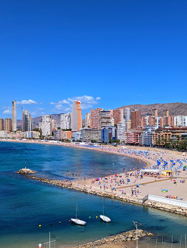 Benidorm Beach is a beautiful and popular beach located in the city of Benidorm, Spain. It is one of the most popular tourist destinations in Spain, and is known for its long, sandy beaches, clear waters, and lively atmosphere.