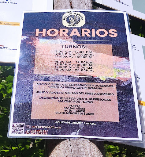 Que bien que vuelva a estar abierta despuĂ©s de 8 años! La visita dura aproximadamente una hora, allĂ te proporcionan casco con frontal, está más o menos acondicionada pero requiere cierta agilidad y ropa cĂłmoda. La guĂa es majĂsima y te explica un montĂłn de cosas de historia, biologĂa, geologĂa... Y las vistas desde la puerta ya merecen la pena. La subida puede ser complicada si tienes vĂ©rtigo ya que es por unas escaleras de metal. El camino para llegar es precioso y fresquito en verano: con sombra y al lado del rĂo. En mayo y junio está abierta los findes, cada hora sale un grupo tanto por las mañanas como por la tarde. Los dĂas de diario es cuando hay que reservar. La visita se empieza ya desde arriba de la escalera; se puede pagar en efectivo o con bizum. Nos ha gustado mucho el plan, y cerca hay un merendero con fuente y mucha sombra, muy buen plan...