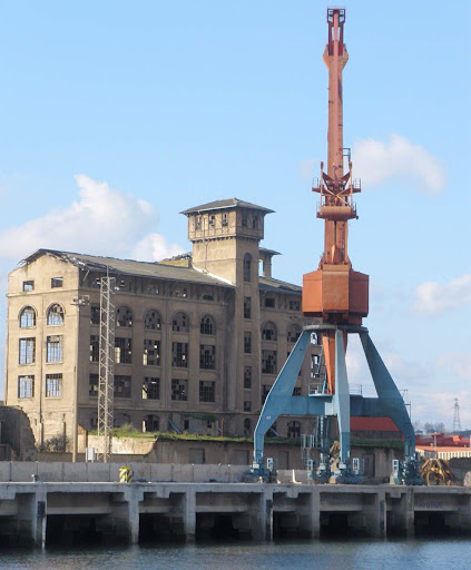 Edificio declarado BIC (insultante el estado en el que se encuentra, quizá sea más apropiado decir, en el que el Gobierno Vasco y el ayuntamiento de Bilbao están permitiendo que esté). Una obra realizada por el español Federico de Ugalde Echevarría que diseñó el primer edifico español construido estructuralmente en hormigón armado, sistema Hennebique. Este arquitecto fue también al que eligieron para la ampliación del ensanche de Bilbao. Este edificio(1922-1924)era una fábrica de harinas. En el lugar estaba el antiguo astillero del siglo XV, algo queda de aquella época. Una lástima no poder entrar al interior. Impresionan los 23 silos. Llama la atención la torre, típica arquitectura regionalista, tan en auge en esos ellos, mucho mérito en un...