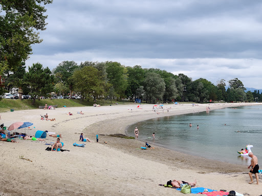 Es una playa ideal para familias con niños pequeños, y para quien le guste nadar sin oleaje... El agua es menos fría que en otras playas de la zona debido al arenal de ría. En marea baja, se puede andar durante mas de 400 metros hacia el interior del mar y como mucho te puede llegar a cubrir por la cintura de una persona adulta. Hay diversos restaurantes donde comer biena comida a buen precio al lado de la playa o cruzando la carretera que la bordea. Tiene zona para caravanas, con un amplio ecoparque de juegos para niños al lado mismo, cruzando la carretera delante del restaurante estrella del mar. Al lado en la arboleda hay mesas de piedra si prefieres ir de picnic. Es un entorno magnífico para todos aquellos a los que os guste la playa... No recomendado para surfistas, body boards...tened en cienta que es una playa de ría y con...