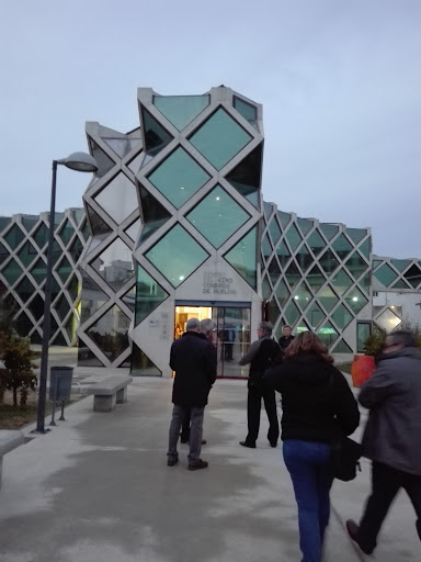 El singular edificio del Centro del Vino, obra de la arquitecta Fátima Pablo Romero, se ha planteado sobre una malla romboidal, proyectado en torno a las curvas como una escultura convexa entre distintas naves para distintos usos, con el objetivo que el visitante, en su interior, se deje inundar por los viñedos.