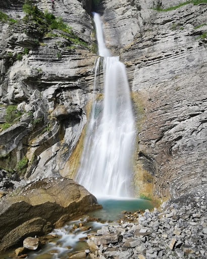 Read moreCascada espectacular justo al lado del pueblo de Broto, cada vez que paso por allí me acerco ya que literalmente son 3m llegar. El camino, corto y sin pérdida, empieza justo en una granja de cabras y sigue el curso del río Sorrosal en un corto sendero acondicionado. A medio camino hay escaleras y a su final un mirador en una plataforma elevada, allí se puede admirar la cascada y su enclave en un pequeño 'circo' geológico impresionante. El río lo cruza una pasarela metálica pensada para acceder a la vía Ferrata que hay, pero con cuidado se puede pasar sin problema y acercarse a la cascada. Los días de lluvia cuidado y cuando baja caudaloso y además hace viento en la parte final, sí o sí te mojas. Espectacular lo mires por donde lo mires y sin apenas...