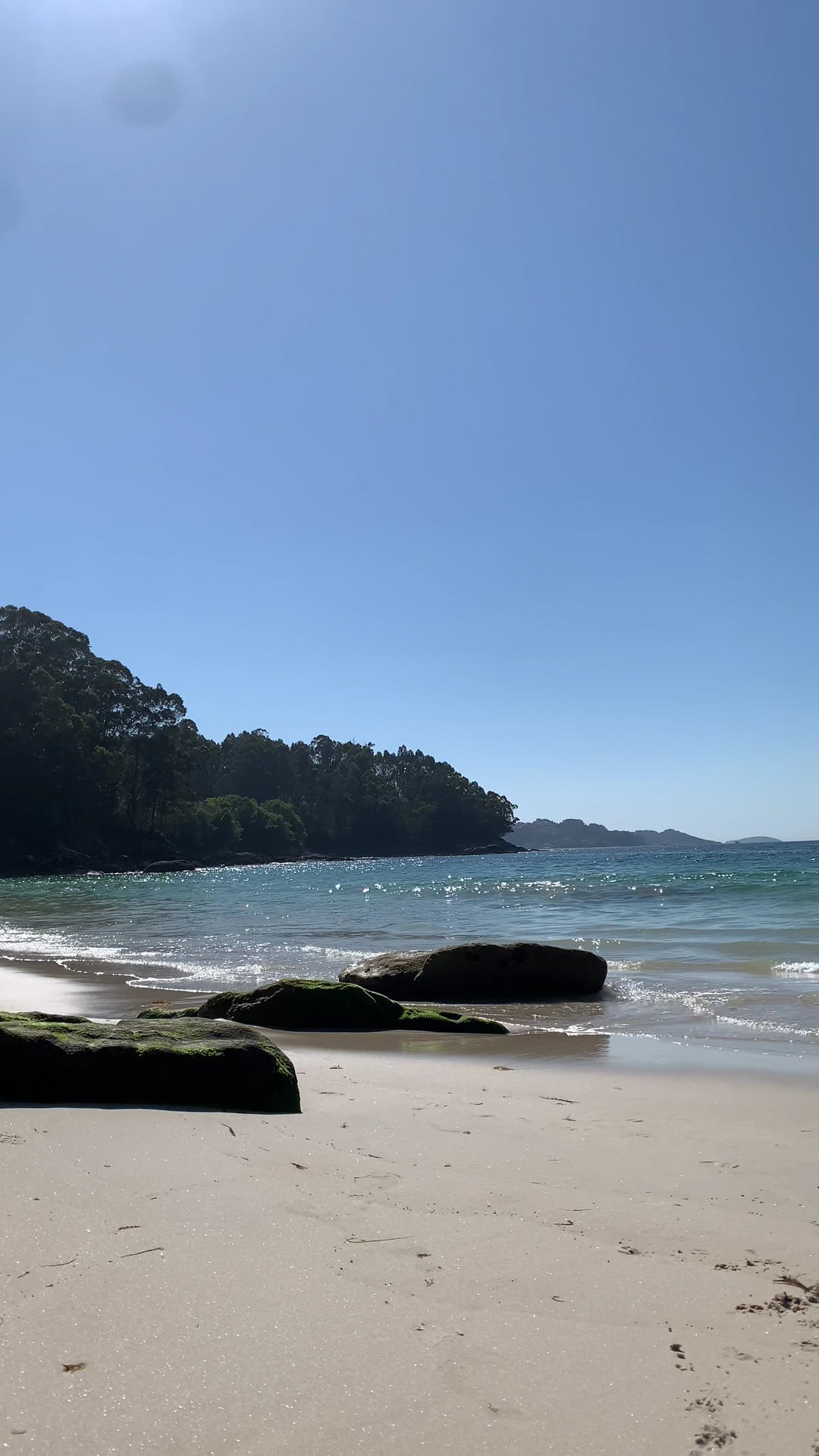 Beautiful beach in the Pontevedra estuary, engulfed by trees, which gives beach-goers shadowed places, thin white sand and several springs running down the beach with little ponds.It's an outstanding beach, I love it, there are three beach bars and you can rent paddle boards in the one situated in the South- west end of the beach. Water temperature is quite warm for being in Galicia, you can contemplate the Ons islands from the beach. The ponds on the beach are a quiet place for the children to play. The only problem with this beach is that it's usually crowded and due to that...