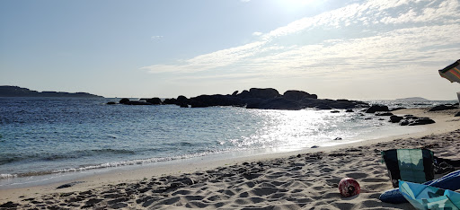 La playa de Lagos es una pequeña playa en la ría de Aldán, después de la playa de Area do Bon. Tiene muy poco parking a pie de playa, por lo que se llena fácil. Pero antes de la misma hay unas explanadas de tierra con vistas donde aparcar gratis. La playa es de arena de grano medio-grueso, con lo que no se pega tanto. Tiene socorristas, bandera azul, duchas y aguas transparentes y tranquilas. Además hay muchas rocas por los lados y en el agua, lo que lo hace ideal para hacer snorkel, si se aguanta el frío del agua, pero mejor ir preparado con algo de neopreno y escarpines, se podrán ver pulpos, sargos y un montón de peces más, mejor con media marea que baja, y alta ya desaparecen las pequeñas piscina entre las rocas. Desde la playa tienes vistas a...