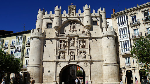 El arco de Santa María es uno de los monumentos más conocidos y emblemáticos de Burgos. Es uno de los puntos de entrada al casco histórico, a través del cual se llega a la plaza del rey san Fernando con la vista de la impresionante catedral de Burgos. Se trata de una de las antiguas doce puertas de la muralla medieval que fue erigida durante la primera mitad del siglo XVI en conmemoración de la entrada que el emperador Carlos V había hecho en la ciudad en 1520, a través de la anterior puerta que aquí había. Era, también, una forma de congraciarse con el rey por las revueltas comuneras de Castilla de aquel mismo año de 1520. De las doce puertas que tenía la muralla, hoy tan solo se conservan seis, siendo la de Santa María la más bonita e espectacular. Esta nueva puerta sustituyó a otra anterior de finales del siglo XIII y que, probablemente, habría sustituido, a su vez, a otra más antigua del siglo X. En el Cantar de Mio Cid, de finales del siglo XII, ya se menciona esta puerta, relatando cuando el Cid baja de su caballo para entrar a pie en la villa de Burgos a través de la puerta de Santa María. Esta puerta fue construida como protección del acceso desde el puente del mismo nombre sobre el río Arlanzón. Se trata de una puerta maciza de claro carácter militar, con la fachada principal en forma de retablo a modo de un gran arco triunfal y rematado por seis torreones almenados que aparentan un pequeño castillo. En la fachada se pueden apreciar ocho figuras en piedra. En el centro se encuentra la imagen del rey Carlos I de España con una espada en una mano y en la otra el orbe y, a ambos lados, las figuras del Cid y el conde Fernán González. Debajo de ellos, en el centro la figura de Diego Porcelos, el conde fundador de la villa de Burgos en el año 884, y las de los jueces castellanos Nuño Rasura y Laín Calvo. En la parte superior está la figura de un ángel custodio de la ciudad y en lo más alto la imagen de la Virgen María con el niño en brazos. El interior del arco es visitable y se pueden ver varias salas, algunas para exposiciones, y un pequeño museo. Están, también, las salas del antiguo Concejo de Burgos y la antigua botica. Además, es posible subir a uno de los torreones. La visita es libre y gratuita y está abierto de martes a sábado, mañanas y tardes. Merece la pena detenerse frente a la fachada principal de esta puerta y observar con tranquilidad cada uno de los elementos que integran este...