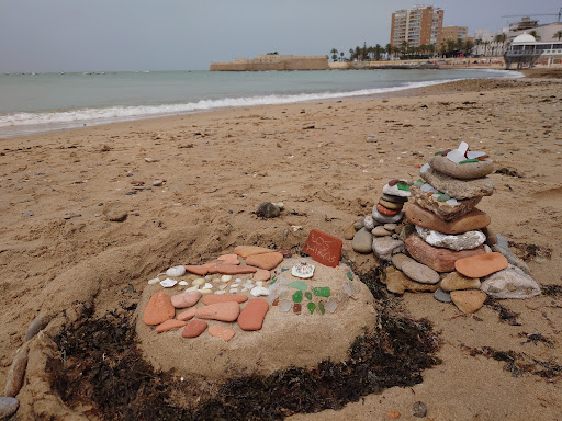 Difícil resumir y poner en palabras posiblemente el lugar natural más emblematico de Cádiz y que se encuentra en el casco histórico. Es la única playa de la zona antigua, aunque artificial ya que se relleno de arena hace varios años y se oculta muchos tesoros. Hay varios elementos elementos a destacar, el edificio que está en playa, y que no se puede visitar y se encuentra el centro subacuático de cadiz y es conocido como el balneario la palma porque hace un siglo era precisamente eso, un balneario. Un edificio infrautilzado. En verano entre sus columnas es un lugar de sombras pa los bañistas, y en invierno un cobijo para los sin hogar. Los rodea dos castillos, el del fondo llamado San Sebastián que tiene más de 2 siglos y esta cerrado al publico y abandonado. También está el famoso faro de metal que tiene más de un siglo. En el extremo opuesto el castillo santa catalina. Es visitable y gratuito, hay zonas expositivas, y en verano se hacen eventos culturales ya, eso sí, de pago. Puede ver todos sus rincones y está muy mal conservado, y apenas tiene mantenimiento. Es una pena. La playa en si , como dije antes es artificial, ya que la arena no es de allí. En realidad es una zona rocosa. Es usado sobre todo por familias con hijos y extranjeros. Tiene acceso a minusválidos con una rampa , servicio para ducharte y consigna, eso sí se pagó, pero también duchas en la arena gratis. Es fácil que se llene facilmente, sobre todo los fin de semana, en especial los domingos, lo cual no os recomiendo. Las mareas son muy pronunciadas y el espacio se reduce significativamente. Ya tirando para el castillo dónde está el faro, es un lugar para pasear y al otro extremo hay pequeñas playas artificiales , pero muy pequeñas y zonas rocosas. Mucho cuidado. Y dos puentes, uno cerca del castillo del fondo, donde los chavales se tiran por el. La zona derecha, está el club náutico y cerrado al público y sólo lo pueden usar los socios. También , ya cerca de la rampa un restaurante para comer pescados fritos y una cerveza con unas vistas increíbles. Y sin duda lo que me ha dado fama, sus puestas de sol, que son espectaculares y diferente cada día. Es muy valorado por los turistas, y podéis ver fotos mías. Y decir para terminar que antiguamente, hace 2.000 años era el muelle romano, ya que el nivel del mar era más bajo. Y mil años más atrás, los que descubrieron y fundaron la ciudad los fenicios y se llamaba la ciudad Gadir. De alguna manera se respira ese misticismo y magnetismo del lugar porque es un lugar emblemático.Y como curiosidad, cuando está la marea vacia ves una zona rocosa a los extremos y una zona de agua que te puedes bañar. Esta es la prueba que el casco antiguo eran antiguamente dos islas. Ahora os invito a visitarlo ya sea para ver sus puestas de sol , colocarlos en la arena o bañarnos en sus aguas. Un tanto turbia...