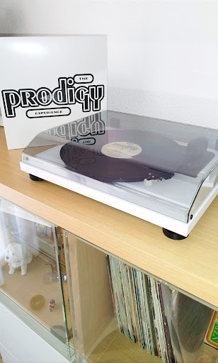 Allí estaba en la exposición, un giradiscos de la marca Teac, el modelo TN-180BT, precioso de color blanco, con una aguja de calidad de la marca Audio Technica. Ideal para lo que tenía pensado, ponerlo en el mueble del salón, que tuviera una estética chula, para cuando quiera escuchar de vez en cuando mis vinilos, encima con bluetooth o salida RCA para altavoces, lo que uno prefiera, yo por el momento por la estética de que no se vean los cables lo conecto a unos altavoces Bluetooth sin problema, se empareja al instante y no tiene retardo a la hora de reproducir discos.