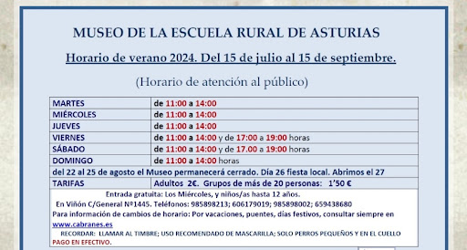 El Museu de la Escuela Rural de Cabranes, situat en una antiga escola construïda el 1907, és un lloc imprescindible per conèixer la història de l'educació rural a Astúries. El museu ocupa un edifici amb dues aules separades per a nens i nenes, i vivenda per al mestre a la part superior. La visita, amb un preu d'entrada de només 2€, permet submergir-se en l'ambient escolar d'èpoques passades gràcies a una col·lecció de material i mobiliari educatiu que abasta des de vora el 1900 fins a la implantació de la Llei de l'EGB el 1970.