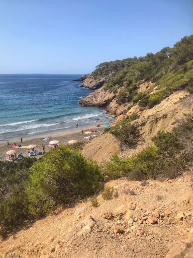 Read moreBueno comparada con otras de Ibiza se merece tres estrellas. Aunque es bonita es bastante incómoda por las piedras de la playa y la base de piedra bajo el agua. Para aquellos que no les guste pisar algas no es recomendable. Es bastante pequeña con un par de restaurantes como servicio. La puesta de sol no se aprecia a no sé qué nades adentro. Como digo para mi gusto es tres estrellas. Habrá quien le encante por la tranquilidad pero las piedras no son mi...