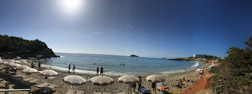 This is one of my favorite beaches in Ibiza with its white sand and crystal blue waters. Absolutely stunning.