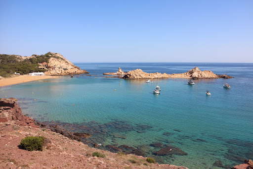 Cala Pregonda is beautifully located inside a bay, well protected by two "mini" rocky islands (Illot and Esculls de Pregonda; do you dare climb them?). The sand is red/golden and the water is crystal clear, making this place a real paradise.