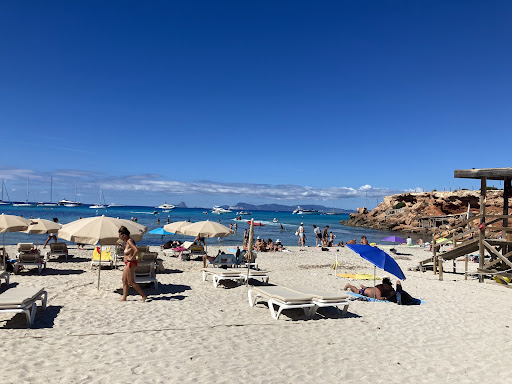 Potentially speaking one of the best beach in Formentera… small beach with beautiful colours…. Unfortunately something went wrong… someone decided to allow too many boats near the seaside ( we are speaking of a very small beach in a small cove surrounded by cliff) and to make it worst they designed the channel for the tenders in the worst possible way… it is on the right side of the bay closing completely out for the people swimming from the beach the bays on the right…also the channel takes almost one fourth of the length of the beach. ( the channel should be in the middle of the beach, narrower and the boats should be allowed only on the lateral bays).The space on the sand has been taken away completely by sun lounges… probably the worst beach...
