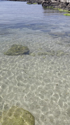 Read moreSe divide en dos calitas con apenas arena, agua espectacular, en una de ellas habían medusas en la otra no, vida marina y restos de plástico que nos devuelve el mar...una pena. Nosotros nos llevamos mas envases de vuelta, si asi hacemos todos algo conseguiremos! Hay un parking justo enfrente del caminito que te baja a la cala, donde caben unos 20 coches quizás. El caminito es muy accesible y cortito, enseguida...