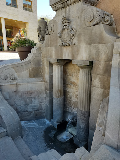 Su gárgola esculpida en forma de león, datada en 1581, se fusiona con una decoración neoclásica y noucentista fruto de las reformas de 1822 y 1927, a cargo del arquitecto Manuel Raspall y el escultor Eusebi Arnau .