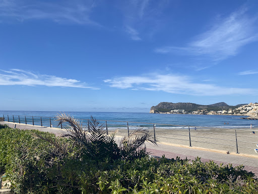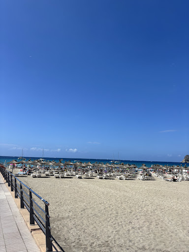 Read moreBeautiful beach - clear sea… Palm trees & loungers (you have to pay) - promenade has Resturant’s & bars. Several shops just above on the plaza. We visited Easter & some places on the plaza were still closed - you can access Platja Palmira (larger beach next cove along) via a side street or via the main street that runs along the top that also hosts lots of shops/cafe/bars/restaurants. Beach is surrounded by beautiful views & has a lifeguard in high season. To the left & right of this beach are several more beaches/coves & walks along the beach tops. Lots of hotels have direct access to this beach so can get busy. Evening sun...