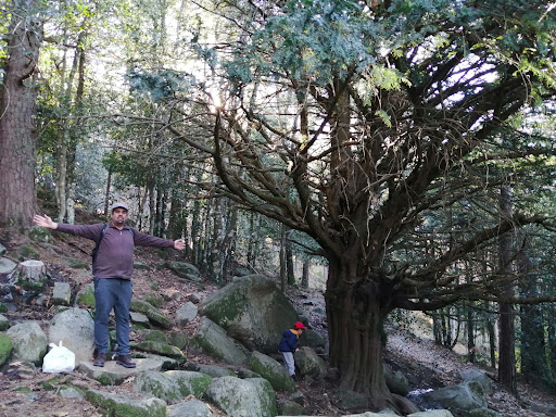 Excepcional ejemplar de tejo, pero si lo visitamos hay que respetarlo y respetar su entorno. Por favor ir en silencio, no pisar demasiado en su alrededor, solo por las rocas que lo rodean y por supuesto no dejar ninguna basura o residuos. Lo mejor es no comer nada en sus inmediaciones. Y muy importante también, no tirar cenizas de nadie y menos aún dejar urnas funerarias ni flores de ningún tipo, ni poner placas de nadie. Esas cosas están penadas por las leyes, además de ser ilegales, es el peor homenaje que podemos hacer tanto al finado como a los árboles. También las autoridades deberían impedir la realización de rallys y carreras de vehículos en este Puerto, la fragilidad de estos bosques no es compatible con semejantes actividades. Se ruega respeto máximo a estos monumentos naturales, si de verdad tenemos admiración por ellos y queremos que dure mil años más. Deberían incluir estos lugares en el Parque Nacional de la Sierra...