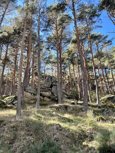 En este punto dejamos la vía forestal que es más ancha y coos por una senda que es más estrecha y pasa más cerca del Centro. Si bordeáis el centro, encontraréis el Mirador de las Rocas, desde el cual hay vistas muy chulas de la sierra.