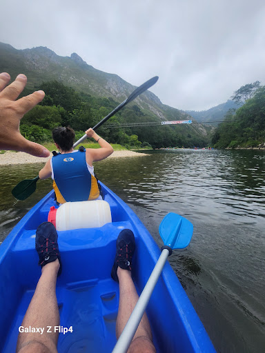 Read moreLas malas reseñas que hay anteriormente se las ganan a pulso y la verdad que la nuestra también. No hay palabras, tardamos en hacer el descenso menos de 4h y nada más llegar llamamos y con la tontería de que tardaron más de 40 minutos en llegar, luego con dos cojones nos dijeron que esperásemos 10-15 minutos a ver si venía más gente, y luego de eso, a recoger a otras personas en otra zona del río. Tardamos 1 h y 40 minutos en volver a cangas (teniendo pruebas desde la hora de la llamada hasta a la hora a la que llegamos al local). Evidentemente que vas a hacer, estás totalmente vendido porque estás en medio del río, sin coche, habiendo pagado ya todo... De vergüenza!!! Éramos los únicos pringados esperando tanto tiempo, todas las demás empresas esperando con sus vehículos la llegada de la gente, y es más, con sus propios carteles avisando, etc. Y nosotros los únicos que esperábamos a la empresa. Es más, tuvimos que preguntar si esta era la última parada de nuestra empresa, y los chicos de las demás empresas nos dijeron que si, y que las canoas iban en x lado, teniendo que arrastrar la canoa en el sitio que nos indicaron para no ocupar los espacios de las otras empresas. Además, llamas nada más llegar y te dicen que en 15-20 minutos llegan y no es la verdad. Menos mal que ese día no hacía frío, estaba pegando el sol fuerte, porque no me imagino la experiencia de estar toda mojada, con niños y...