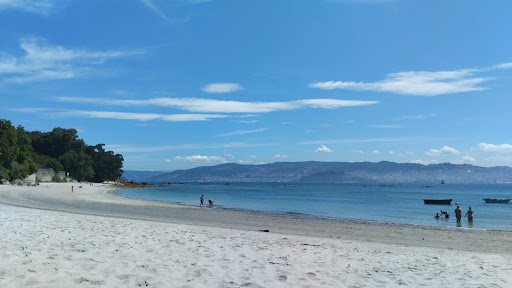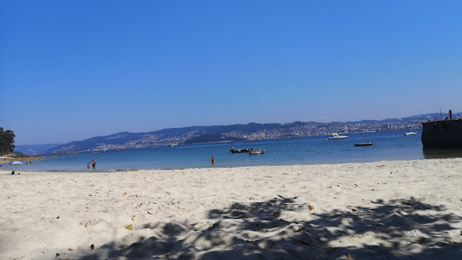 Playa solitaria, junto al muelle de pescadores, limpia, cristalina y sin olas, frente a Vigo. Entera para nosotros nos hemos dado un baño solos. Agua fresca aunque muy agradable, con mucho sol, te secas en 10 min. Arena, súper fina. No hay pozas al entrar, no hay corrientes, desnivel muy progresivo, se nada muy fácil, con...